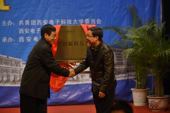 開幕式上,張培營與王陽共同為“鯤鵬創新俱樂部”揭牌。王陽在致辭中講到,鯤鵬通訊倡導創新,注重和高校的合作,西電鯤鵬創新俱樂部是公司聯合高校成立的第一家學生創新俱樂部,俱樂部在前期成立籌備階段,已經孵化出一個商業科技項目,他相信通過學校團委、鯤鵬通訊和俱樂部學生項目團隊的共同努力,將會產生出更多具有市場前景的科技孵化項目。