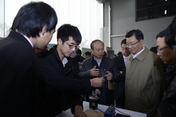 開幕式結束后,與會領導、嘉賓和參賽師生共同參觀了本屆“星火杯”科技作品展。根據競賽日程安排,作品展將持續一周,向全校同學開放,并將在每天下午安排作者為大一新同學進行現場講解,促進同學們之間的交流與學習。