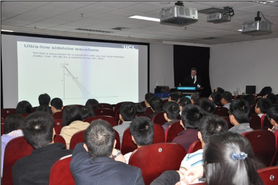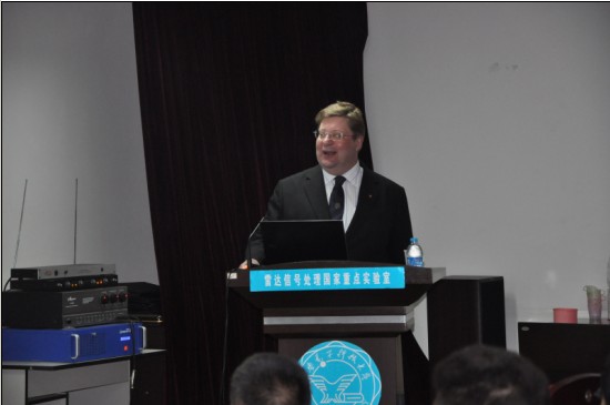 4月14日上午,英國倫敦大學Hugh Griffiths教授在北校區新科技樓1602會議室為我校師生做了題為“The Challenge of Waveform Diversity”的講座。報告介紹了雷達波形分集的最新研究成果和面臨的挑戰,包括波形分集基本理論,超低旁瓣波形設計,頻譜混疊問題研究以及仿生波形設計等內容,引起了與會師生的極大興趣。會后, Hugh Griffiths教授與感興趣的師生進行了深入的學術討論,對他們的研究工作給予了極大的啟發與幫助。