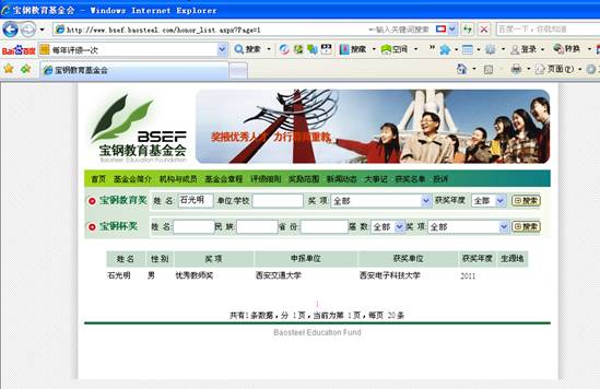 從寶鋼教育基金會獲悉,我校電子工程學院石光明教授榮獲2011年度寶鋼優秀教師獎。