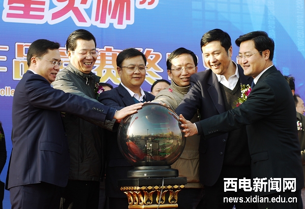 黨委副書記龍建成、華為西安研究所所長龔體和與會嘉賓用水晶球共同啟動第22屆星火杯