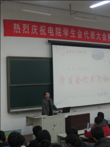 電院新聞中心訊 (通訊員 王雪霽)2010年12月13日下午4:20,電子工程學院學生會代表大會正式召開。出席此次會議的有電院黨委書記鄧卓峰、黨委副書記徐克、各年級輔導員、校學生會代表央國華副主席、各兄弟院系學生會代表以及我院科協、團委代表。
