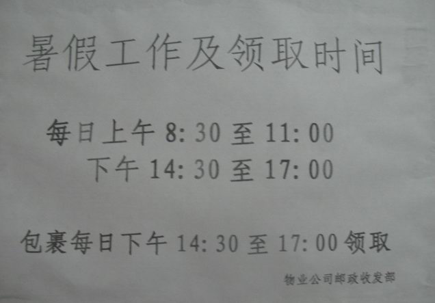 2010暑假北校區收發室報箱開放時間