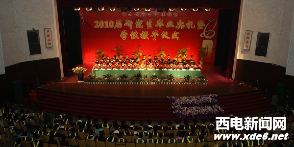 黨委書記陳治亞,校長段寶巖,黨委副書記龍建成,副校長陳勇、陳平、楊銀堂,黨委副書記、紀委書記靳雅靜,黨委常委校長助理張培營,黨委常委組織部部長蔣舜浩,黨委常委研究生院常務副院長李建東,校職能部門負責人,各學院領導,以及導師代表和2000余名身著學位服的2010屆畢業研究生歡聚一堂,一同分享收獲的喜悅。陳治亞、段寶巖分別發表了熱情洋溢的講話。畢業典禮由研究生院副院長盧朝陽主持。部分畢業生親屬和好友參加了典禮。