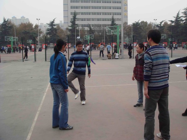 一聲哨響,全場最引人注目的拔河比賽正式開始。在雙方15名男生加5名女生的陣型基礎上,比賽采取三局兩勝制。雙方隊員愈戰愈勇,而拉拉隊員也憋足了力氣喊起口號,各年級種子隊更是齊聚了本年級的大力水手們一展勇力,充分發揮團隊的力量。當拔河比賽進行到半決賽的時候,其他幾個項目也分區域展開。在比賽組織方的周密部署和各項目負責人的通力配合下,各組參賽隊員很多都是男女生搭檔,在突出個人能力的同時更加注重默契和協作。踢毽子和跳繩是女生們最為親睞的項目,平日里在實驗室伏案,專心于學術的智能所學子們,紛紛變得生龍活虎,巾幗不讓須眉。而用球拍帶乒乓球接力的趣味乒乓球賽,和隊員來回傳球的互動排球賽,則是男生們大展身手的時機,大家信步穿梭,驕如龍健如虎。更為有趣的雙人障礙跑,盡管有步伐一致上的障礙,但男女生的默契配合明顯在賽場上顯示了其優勢,你來我往其樂無窮。在其他幾個項目都決出冠亞軍之后,拔河總決賽中,研三隊獨占鰲頭,而研二隊則獲得了第二名。同時,教師代表也同大家進行了一場拔河友誼賽,師生同樂,彼此間的親密更進了一層。