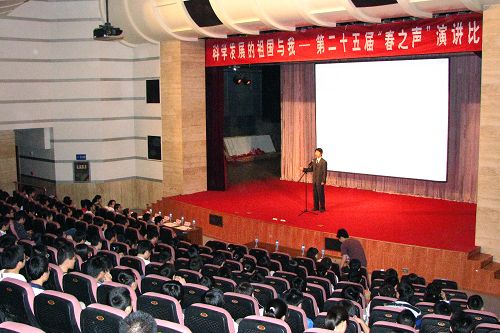 E流網訊(通訊員 金陽群)4月29日下午,由校團委主辦,技術物理學院分團委承辦的第二十五屆“春之聲”演講比賽在新校區大學生活動中心小劇場成功舉行。校黨委宣傳部副部長吳秀霞、技術物理學院黨委副書記林波、校團委副書記朱文凱蒞臨比賽現場,數百位同學聆聽了演講。