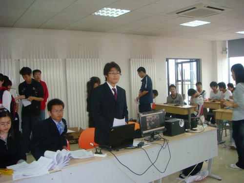 5月10日上午九點,大學生活動中心I-213座無虛席,大一220余名同學冒雨來到大學生活動中心,比賽在簡短的開幕式后正式開始。雖然大一同學對相關知識掌握不是很全面,但大家對此表現出了極大地熱情,有很多同學在比賽宣傳初期就開始學習相關知識和練習焊接技術,在現場表現了較高的水平。在近三個小時的比賽中,大家都一絲不茍,目光中充滿了對知識的渴望。當比賽進行到作品調試階段時,大家都屏氣凝神,調試成功的同學都非常激動,賽場上發出陣陣歡呼聲,很多同學都要求吧圖紙帶走留作紀念。