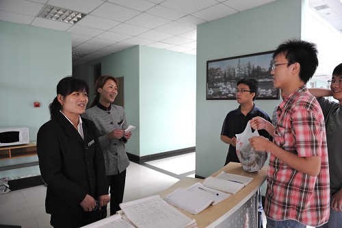 上午10點,幾位電院大四學生代表提著精心準備的粽子禮品走進了海棠公寓的大門。沒有多余的繁文縟節,沒有刻意的噓寒問暖,有的只是淡淡的笑容與真誠的心愿,而迎接他們的則是海棠管理人員一如既往的親切笑意與認真的眼神。