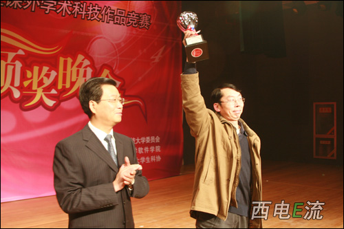 頒獎典禮對西安電子科技大學第四屆科技英才、本屆“星火杯”競賽特等獎得主、獲得“星火杯”、“優勝杯”及“優秀組織單位”的學院進行了頒獎。最終,《動態密碼聲紋安全認證系統》等17件作品特等獎,《雙足步行機器人》等47件作品一等獎,《土壤水份溫度自動控制系統》等123件作品二等獎,《汽車底盤防撞檢測儀》等329件作品三等獎。電子工程學院獲得“星火杯”,軟件學院、機電工程學院獲得“優勝杯”,計算機學院、技術物理學院、通信工程學院、理學院獲得“優秀組織單位獎”。