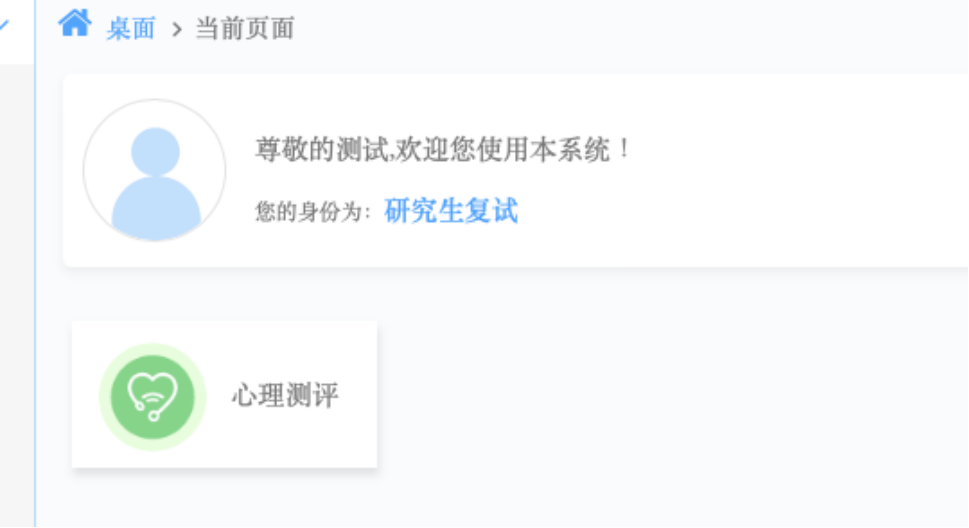 登錄軟件后,點擊桌面上的“心理測評”圖標,即可參與心理健康評測,如下圖: