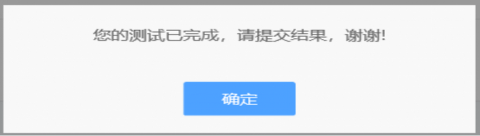 點擊進入后點“開始測試”按鈕開始測試,全部題目做答完畢后,點“確定”按鈕即可。