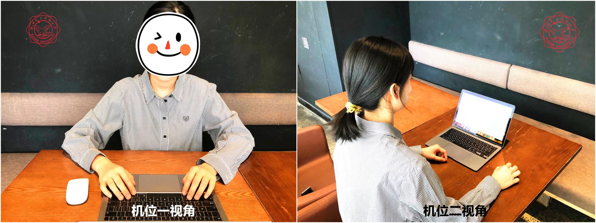 雙機位視頻監控模式,主機位建議為電腦,從考生正面拍攝,使用騰訊會議;監控機位為手機或電腦,從考生側后方拍攝,使用釘釘平臺。主機位與監控機位擺放保證可360度進行環境監測,遇主機位意外斷網時監控機位。