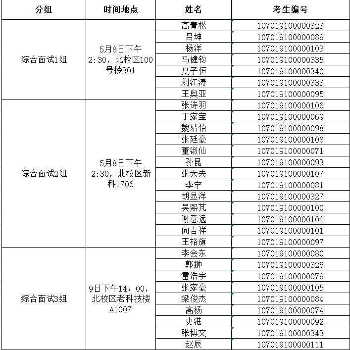 電子工程學院2019秋博士招生復試綜合面試分組通知(一) 2019-05-08 10:06:00 瀏覽次數: 各位考生: 電子工程學院2019年秋季博士招生復試綜合面試安排如下: 請考生攜帶準考證及身份證按時參加綜合面試,未參加綜合面試者不予錄取。 綜合面試要求詳見:西安電子科技大學電子工程學院2019年(秋季)學術學位博士研究生招生復試與錄取工作安排 電子工程學院研招辦 2019年5月8日 上一篇文章:電院唐朝陽專利公示 下一篇文章:關于2019屆碩士研究生畢業和學位申請的通知