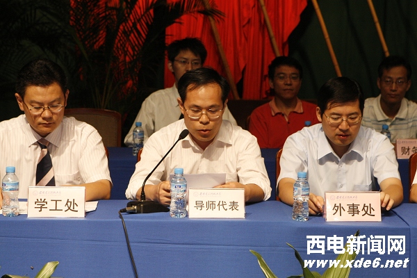 2009級研究生程榮剛代表新生同學表示,在未來的研究生學習生活中,要牢記師長們的教誨,明確目標、虛心好學,善于創新、追求卓越,使自己能夠在以后的激烈競爭中乘風破浪,盡顯西電學子風采,為母校爭光!(完)