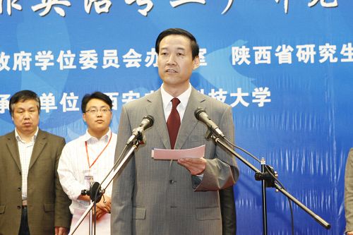 西安電子科技大學校長段寶巖教授、陜西省人民政府學位委員會秘書長孫朝、陜西省人民政府學位委員會辦公室副主任楊俊利、陜西省學位與研究生教育發展中心吳俊剛副主任、甘肅省人民政府學位委員會辦公室侯志峰、西北工業大學研究生院副院長李鐵虎教授、西安交通大學研究生院副院長何茂剛教授、陜西師范大學研究生部主任楊祖培教授和陜西省研究生外語教學研究會會長白靖宇教授、西安電子科技大學研究生院副院長盧朝陽教授等領導出席了本屆演講比賽開幕式。除上述領導外,西安電子科技大學副校長楊銀堂教授和西安建筑科技大學研究生學院常務副院長郝際平教授還出席了閉幕式。