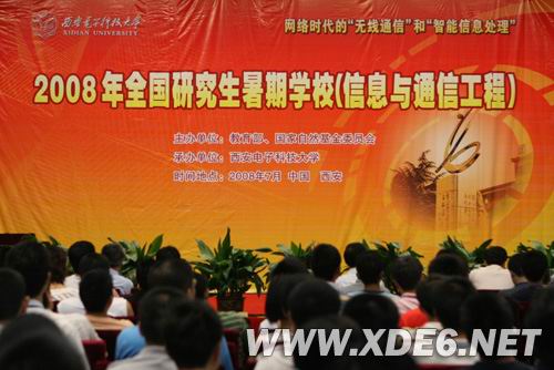 7月14日上午, 2008年信息與通信工程全國研究生暑期學校在西安電子科技大學科技樓報告廳舉行開學典禮,來自全國40多所高校的碩士研究生、博士研究生和青年骨干教師等近300人參加了典禮。