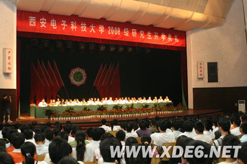 E流網訊(通訊員 佟玉琢) 8月20日上午,2008級研究生開學典禮在學校大禮堂隆重舉行。黨委書記陳治亞、校長段寶巖、黨委副書記龍建成、副校長郝躍、陳勇、陳平,黨委副書記、紀委書記靳雅靜,以及各院部相關領導出席了開學典禮。出席本次開學典禮的還有北京電子科技學院黨委書記沈永社,研究生工作處處長李鳳華。我校2008級2500余名碩士研究生、240余名博士研究生參加了開學典禮。典禮由我校學生工作處處長任小龍主持。