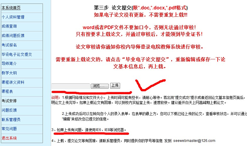 本年度畢業設計論文電子版將通過“電院畢業設計電子論文管理系統”進行網上提交和集中存檔管理。(注意是電院系統不是教務處的教務系統!)