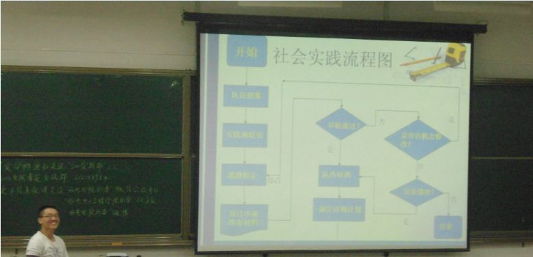 電院宣傳中心訊(通訊員 汲德印)5月31日晚7點,電院團委在B樓434教室舉行了第二場暑期實踐宣講會。電院團委實踐部張宇瞳、宋洋等向大家介紹了暑期實踐(以下“暑期實踐”簡稱“暑實”)的時間與流程、今年暑實的主題、院隊選拔的相關事宜以及及去年暑實的成果。