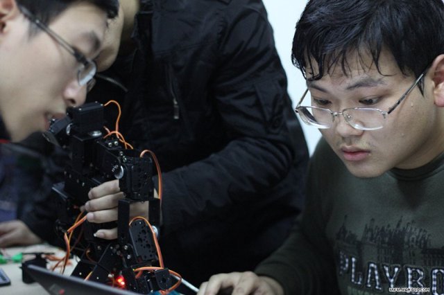 本次作品展分為硬件與軟件作品兩種類型,硬件作品包括“全自動智能魚缸”,“奶ba”,“基于arduino的17自由度機器人”,“聲控車載機械手臂機器人”等十余件作品,軟件包括“西電學術信息網”,“基于單攝像頭的手勢識別”,“ishowFX美圖任我下”等。據了解,該機器人的結構由續拓自主設計并已申請專利,并通過出售使用權贏得研究資金,作品“基于圖像處理的多點觸控技術”很受同學歡迎,作者詼諧的演示和精湛的技術講解贏得陣陣贊揚,而作者與同學的互動游戲更是讓歡笑在空氣中凝結,科技所帶來的歡樂如繁星在彰顯閃耀。王新懷和袁曉光老師在參觀了各個作品,并與作者交流后不禁感嘆本次作品不僅僅數量上有所增加,而且科技含量也大幅提高,對同學的積極性與自主研究能力作出肯定,并指出作品仍存在欠考慮的地方,表明還將會通過對各個作品的電子版詳解進行評析。展示最后,電院科協工作人員根據各個作品的票數評出最受歡迎作品,其中“利用腦電波變焦及視線跟蹤的立體圖像系統”?“ishowFX美圖任我下”和“奶ba”榮獲前三名。