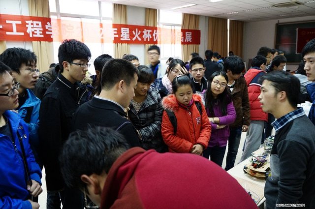 2012年11月22日下午3:00整,眺望塔15聲飄渺琴韻似熏風紛落著信遠2區天井的漫地秋葉,輕輕敲開206室的紅門,由科協主辦的電院2012年星火杯作品展拉開帷幕。室內人聲沸騰,門庭若市,25件作品依次在展臺展示,各個作品的作者及其團隊紛紛到場為前來參觀的同學詳細介紹其作品的主要功能和程序說明,李隱峰老師帶領001112卓越班學生前來參觀,并與王新懷,袁曉光老師對作品作出指導,作品展設立投票區,經過4個小時的參觀?投票,同學們選出了6件最受歡迎作品,其中“利用腦電波變焦及視線跟蹤的立體圖像系統”最受好評。