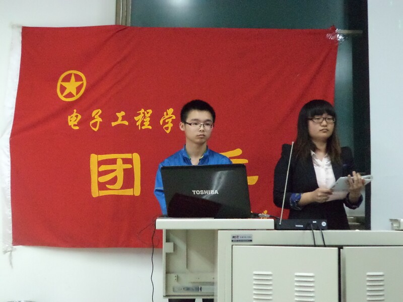 答辯會當天,會場中“電子工程學院團委”鮮紅的大旗莊嚴肅穆。16:25答辯會正式開始。來自團委組織部的趙旭主持會議。待他宣讀完答辯規則后,一場場精彩的答辯拉開了序幕。在歷時近兩個小時的答辯中,各團支部展示了“好吃不過餃子,溫暖不過集體”、“早餐約定”、“一拉一”、“學雷鋒”等許多有意義的活動。會議最后,張寧詳作了深刻而富有哲理的總結發言。