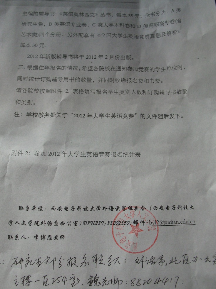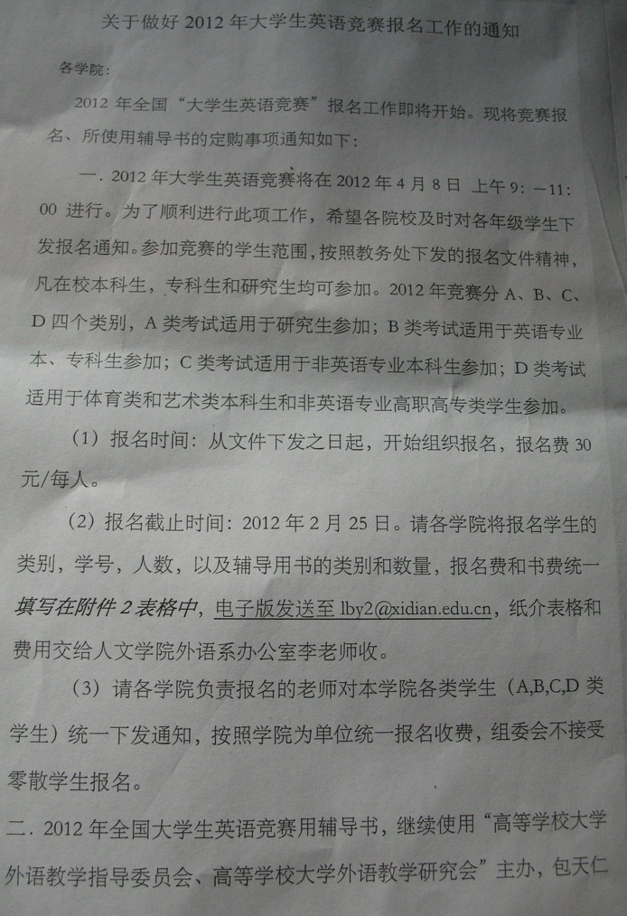 1. 2012年全國大學生英語競賽西安電子科技大學組織委員會