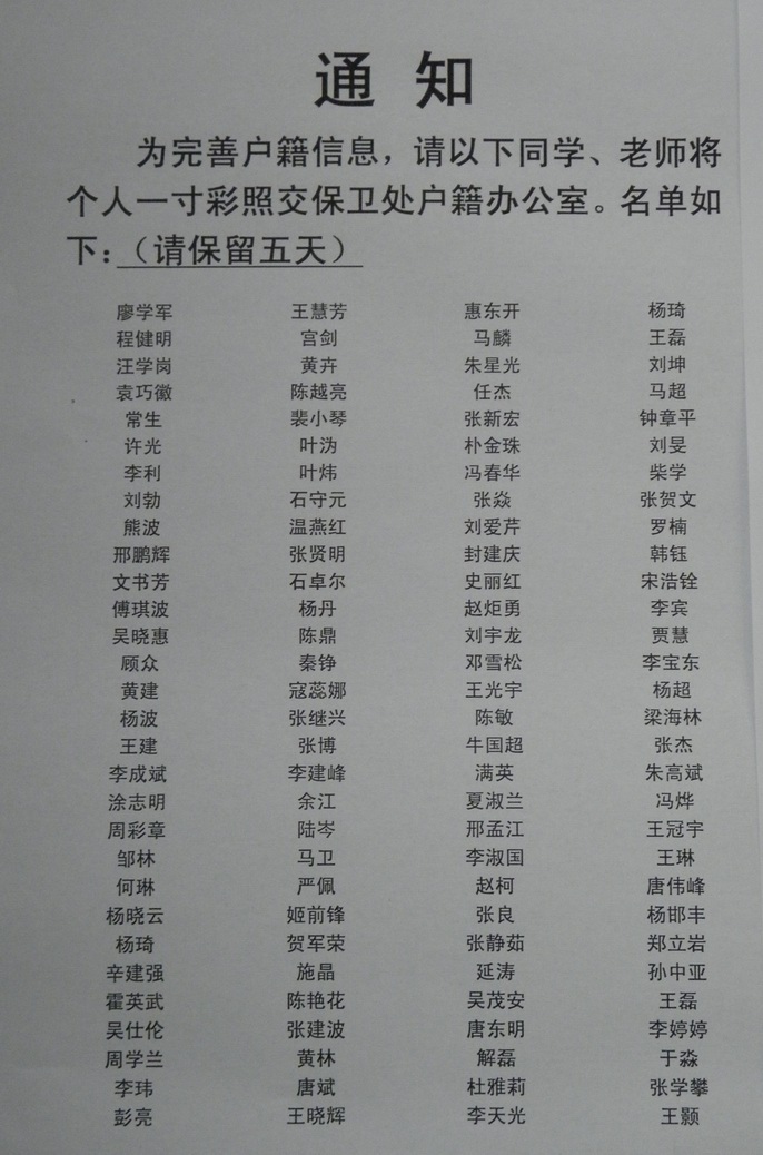 保衛處關于完善戶籍信息通知 2011-12-27 14:18:00 瀏覽次數: 這個通知在前兩周貼在學校北校區西南門口通知欄,如果已經按通知提交了照片,可以忽略。北校區戶籍辦地址 西大樓西側例行樓一層 ,電話:029 88202961 上一篇文章:電子工程學院五場“我與西電共成長”優秀學生巡回報告活動精彩紛呈 下一篇文章:電子工程學院開展“學風建設與文明宿舍建設促進月”活動