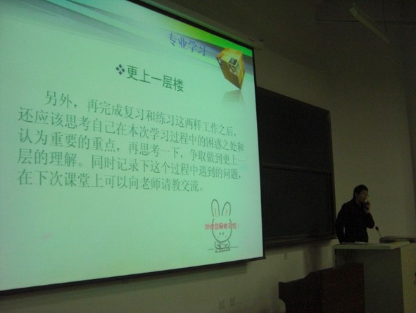 12月18日晚,巡回報告團第二場報告會在D—206舉行,電子工程學院09級優秀學長楊雪、戶盼鶴為400余名大一學生帶來題為“大學如何分配時間”和“且行且珍惜――淺談讀怎樣的大學及怎樣讀大學”的報告。楊雪結合自身學習經歷,談了如何在平時及考前更有效的分配時間,向廣大師弟師妹介紹“每日任務分配法”等實用學習技巧。戶盼鶴同學此次報告的主要內容集中在如何盡快適應大學生活并樹立學習目標。