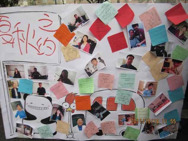 活動前期,電院團委的工作人員征集了學校老師以及大一新生對于校慶的祝福,并將照片與寄語在現場加以展示。由于本次活動是6月份“夏秋之約—第一季”的傳承,因此也一并展出了第一季活動中征集的已畢業的大四學長對學校的美好寄語。而學長學姐們的祝愿紙條也和獎券一并放入了抽獎盒中。