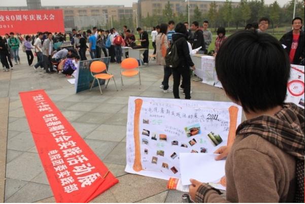 現場還有電子工程學院校慶系列活動的前幾次活動成果展示,包括夏秋之約與微笑之旅等,引得路人紛紛駐足圍觀。