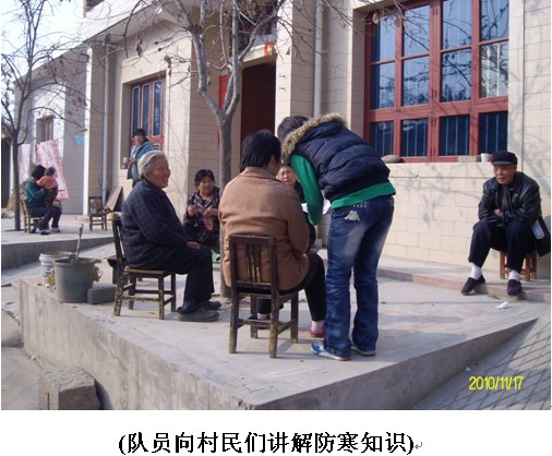 2010年11月17日,電子工程學院團委實踐部組織志愿者服務隊進入堰渡村,向村民們宣傳防寒保暖的知識,此次活動得到村民們的廣泛支持。