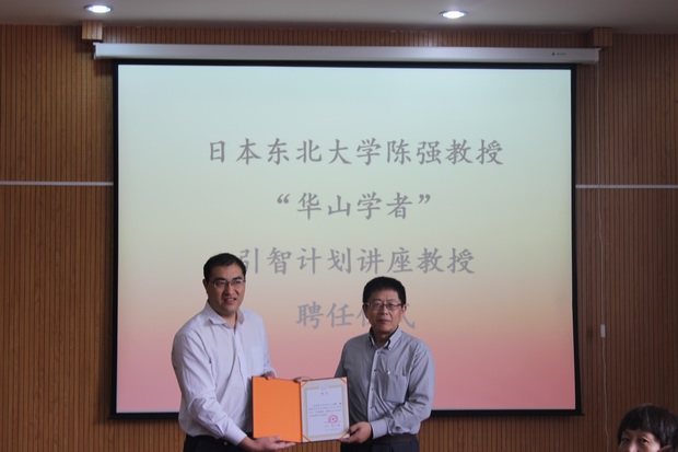 2015年6月6日,日本東北大學陳強教授“華山學者”引智計劃講座教授聘任儀式在我校北校區信息感知協同創新中心一樓會議室召開。聘任儀式由電子工程學院副院長蘇濤主持。我校三十余名師生出席了聘任儀式。