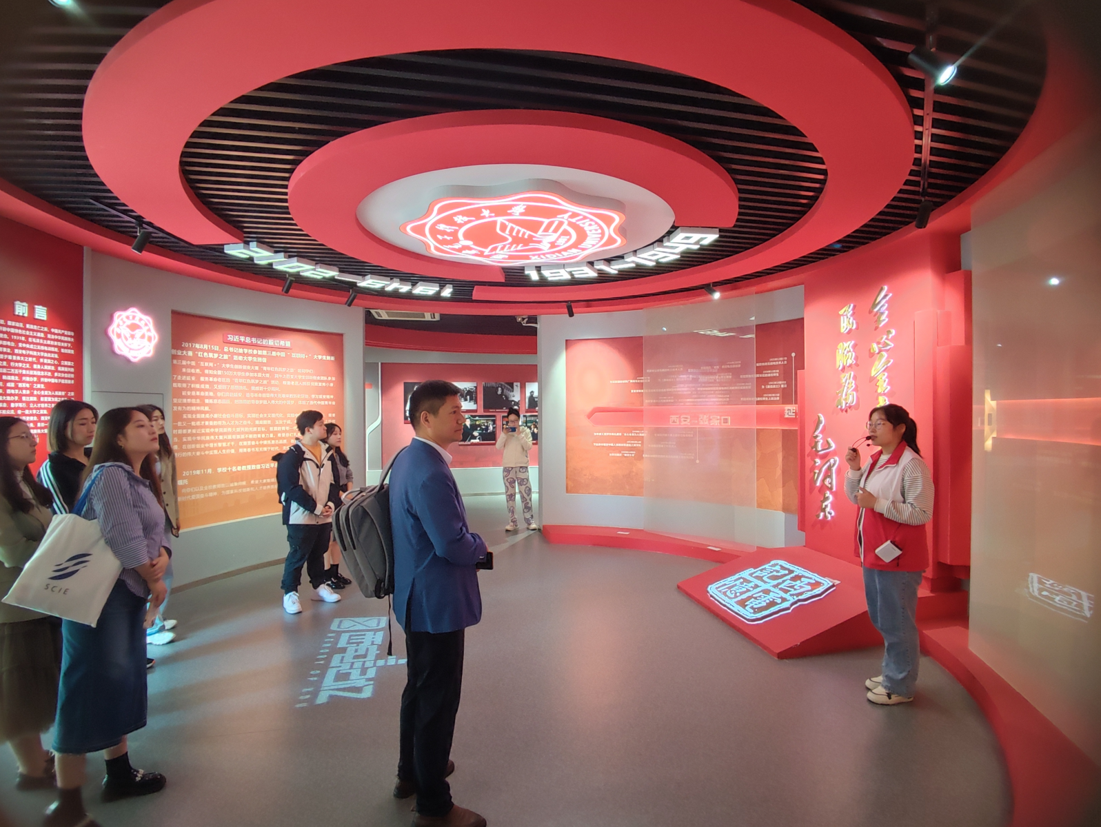 本次交流活動從參觀西電校史館展開,上海大學老師們沿“俯垂明訓”、“校史鉤沉”、“今日華章”三大篇章細致深入地了解西電的歷史沿革和發展脈絡,體悟學校前輩們秉承“全心全意為人民服務”的辦學宗旨,感受做“科學的千里眼順風耳”的堅定初心。