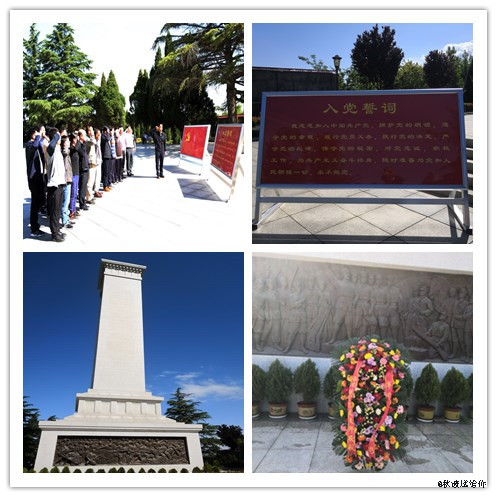 大家在刻有渭華起義紀念館的巨石前留影后,首先來到了莊嚴肅穆的渭華起義烈士紀念塔。兩位青年教師代表大家向渭華起義烈士紀念塔敬獻花籃,全體人員面向紀念塔,肅立鞠躬默哀,向英雄的先輩們致以崇高的敬意。而后全體黨員同志在高大雄偉的紀念塔下,面對著鮮紅的中國共產黨黨旗舉起右手,緊握右拳,向英烈們保證,向黨旗莊嚴宣誓:“我志愿加入中國共產黨,擁護黨的綱領,遵守黨的章程,履行黨員義務,執行黨的決定,嚴守黨的紀律,保守黨的秘密,對黨忠誠,積極工作,為共產主義奮斗終身,隨時準備為黨和人民犧牲一切,永不叛黨”。這鏗鏘有力、擲地有聲的誓言,是我們每個中國共產黨員的堅定信念和決心,是我們每個教育科研工作者的使命擔當和責任。