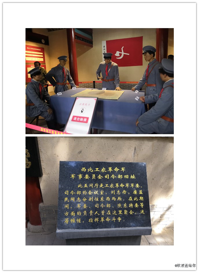 參觀完展廳后,我們來到渭華起義司令部舊址進行參觀,緬懷革命先烈。這里館藏資料1400余件,陳列展室7個,起義領導舊居4處,館內保留了當年起義時具有重要意義的革命遺址五處,分別是西北工農革命軍軍委指揮部—五間廳,十五個磚鋪大字,中共華縣縣委辦公樓舊址,西北工農革命軍軍委擴大會議遺址,烈士殉難井。當大家駐足在青磚與鵝卵石堆砌而成的“同志們趕快踏著革命先烈的鮮血前進啊”這句話前時,心情久久不能平靜,耳邊似乎再次響起那戰士的吹號聲、撕殺聲、吶喊聲……