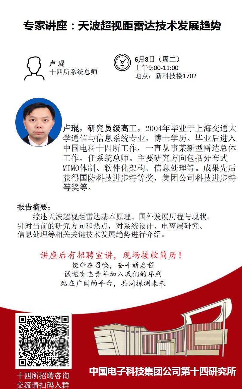 專家講座:天波超視距雷達技術發展趨勢 2021-06-04 16:33:00 瀏覽次數: 責任編輯:鄧鑒 上一篇文章:崔鐵軍院士專題報告會:電磁空間的表征和調控 下一篇文章:講座報告:基站天線異頻單元間的去耦技術