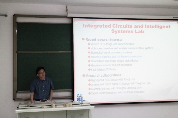 5月16日上午,王教授在西大樓119做了題為“數字信號處理在集成電路實現中的優化”的學術報告。報告會由電子工程學院光電與信息工程系石光明教授主持。王教授首先從不同層面對集成電路的優化進行了概述,然后介紹了其課題組近幾年在濾波器實現、Turbo碼、RS碼、超強乘積碼方面的研究工作和工程實現情況,并分享了其在工業界的很多重要經驗和體會。整場報告深入淺出,受到了在座師生的熱烈歡迎。