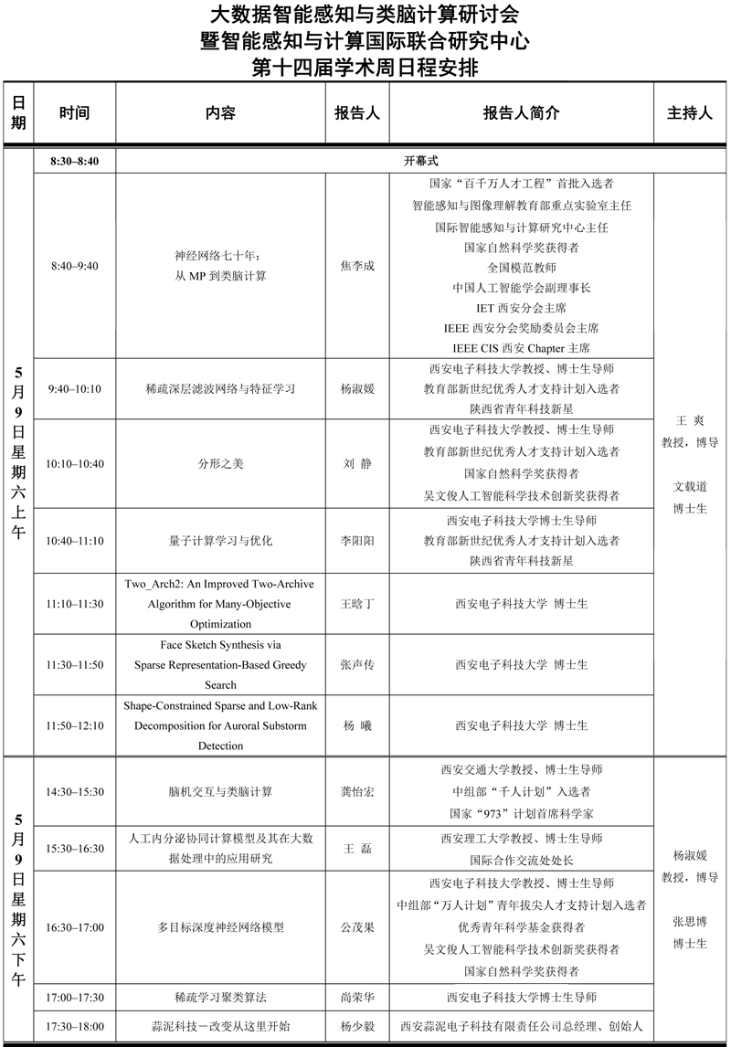 大數據智能感知與類腦計算研討會暨智能感知與計算國際聯合研究中心第十四屆學術周日程安排 2015-05-08 08:02:00 瀏覽次數: 上一篇文章:HPC Advisory Council 高性能計算與大數據研討會 暨第三屆RDMA大學生編程挑戰賽宣講會 下一篇文章:DRA Audio Coding Standard: Technology and Road to International Standard