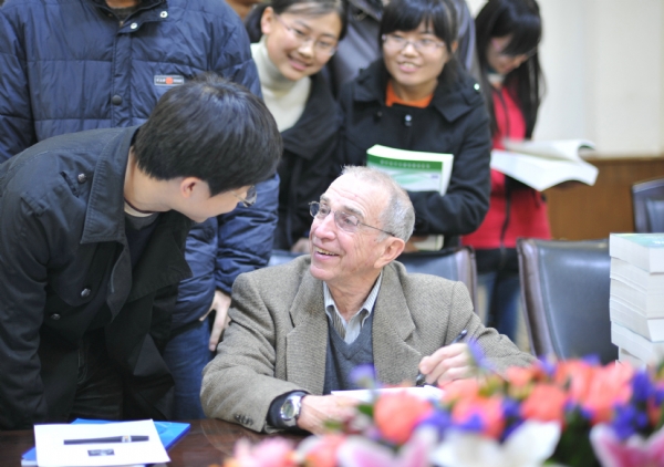 11月2日下午,Alan V. Oppenheim教授與學校教師及學生代表在北校區行政樓第3會議室進行了座談。師生們就信號處理方面的課程設置和教學特點等問題與Oppenheim進行了深入探討。結合多年來的教學和科研經驗,Oppenheim對青年教師提出的“教學與科研的關系”等問題進行了一一解答,并提出了寶貴建議。他還勉勵師生們說,一個出色的研究人員應具備兩個基本素質:“勇于挑戰”和“富有創造力”。座談結束后,學校還組織了Oppenheim著作簽贈活動。座談會上,研究生院常務副院長李建東教授對Oppenheim教授的來訪表示歡迎,并高度評價了其在信號處理領域做出的杰出貢獻,國際合作與交流處處長高新波教授就西電80年來的發展歷程和取得的輝煌成就作了介紹。座談會由石光明教授主持。