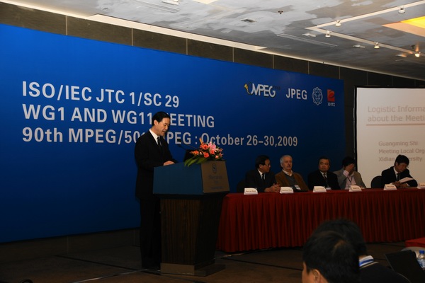 由國際標準化組織運動圖像專家組中國代表團提議,ISO/IEC JTC1 SC29 WG11(以下簡稱MPEG)和ISO/IEC JTC1 SC29 WG1(以下簡稱JPEG)授權,經國家教育部批準,第90屆MPEG和第50屆JPEG國際標準會議(以下簡稱“標準會議”)于2009年10月24日至30日在中國西安喜來登大酒店舉行。會議為期7天。此次“MPEG/JPEG國際標準會議”由我校電子工程學院負責承辦。鑒于與會代表均為來自世界各地的在視頻、音頻及系統領域處于科技前沿,有重大貢獻,且有較大影響力的專家學者,會議規模之大,國際影響之深遠,本次會議也得到了陜西省西安高新技術產業開發區管理委員會的大力贊助。