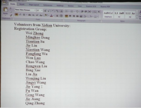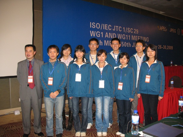 第90屆MPEG和第50屆JPEG國際標準會議于2009年10月24日至30日在西安喜來登大酒店舉行。此次“MPEG/JPEG國際標準會議”由我校電子工程學院負責承辦。本次會議經過電子工程學院航天電子信息研究所、國際合作與交流處、電子工程學院網絡信息中心將近一年的籌備。會議網站系統由電子工程學院網絡信息中心提供支持。同時,從全校近200名報名者中,挑選出50多名志愿者參與了會議現場的服務工作。志愿者全部是在校研究生,他們主要為會議提供了語言翻譯、場地引導、設備維護、網絡支持等等多種服務,受到MPEG和JPEG國際組織及參會專家的高度評價。下面照片展示了此次會議上志愿者的風采,以此紀念12月5日國際志愿者日。會議詳情見http://www.lstaobao.net/news/newsshow.asp?id=3259