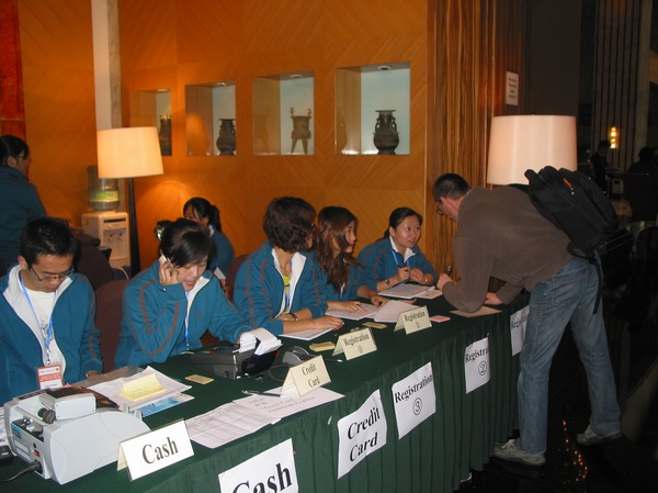 會議注冊組志愿者在會議正式開始前就到達會議現場為參會人員進行注冊
