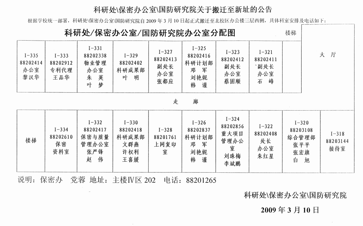 科研處、保密辦公室、國防研究院辦公地點和電話 2009-09-07 10:02:00 瀏覽次數: 文字版的看這里http://www.lstaobao.net/news/newsshow.asp?id=2434 上一篇文章:國立臺灣大學王暉博士來我校進行學術交流 下一篇文章:西電與法國圖爾大學簽訂校際友好合作交流協議
