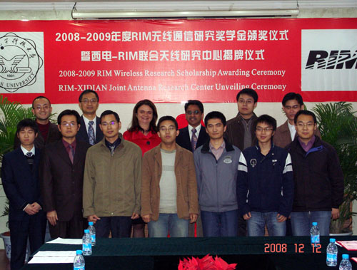 E流網訊(通訊員 劉存利)12月11日-14日,RIM(Research In Motion)公司FR系統設計部首席科學家Nagula Sangary博士、電磁部技術總監(我校校友)Yihong Qi博士、大學研究項目高級顧問Adele Newton女士等一行3人專程來我校參加RIM無線通訊研究獎學金頒獎儀式暨西電-RIM天線聯合研究中心的揭牌儀式。