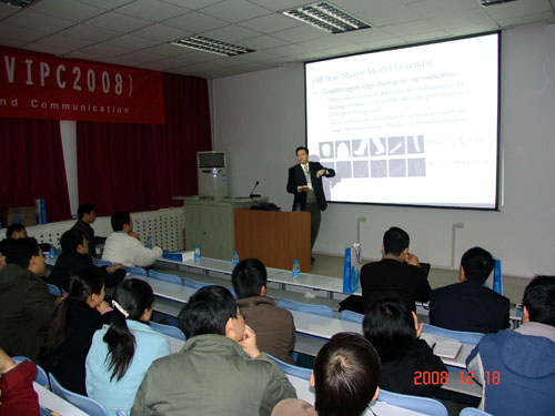 本次研討會就網絡與通信、視覺信息處理兩大主題開展廣泛深入地學術交流。會議共邀請了5位國內外知名學者做了專題報告,他們分別是:微軟亞洲研究院主任研究員吳楓教授、美國德州大學圣安東尼奧分校副教授兼微軟亞洲研究院主任研究員田奇博士、美國俄克拉荷馬州立大學副教授樊國良博士、美國北卡羅萊納州立大學的王新兵博士、中國科學技術大學盧漢成副教授。我校電子工程學院影像處理實驗室的部分博士生也分別報告了自己的研究工作。詳情請參見會議的主頁:
