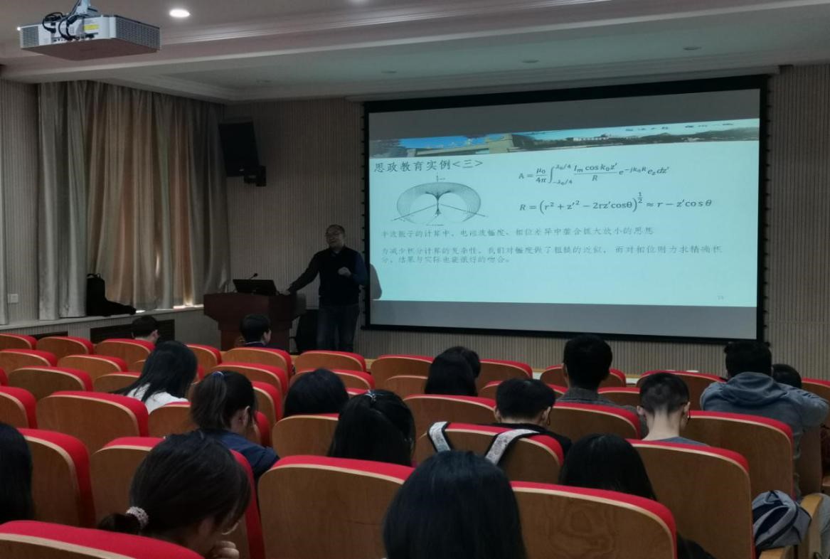 報告中,梅教授以所講授的《電磁場與電磁波》課程為例,結合教學本身,選取天線陣、半波振子等課程內容,生動形象地向大家展示了如何進行課程思政建設,科學合理拓展專業課程的廣度、深度和溫度,有效增加課程的知識性和人文性,將“讀萬卷書”和“行萬里路”有機結合,真正做到潤物細無聲。梅中磊教授的專題報告站位高、視野廣、案例詳實豐富,干貨滿滿。在會后的交流研討環節中,參會教師就課程思政效果評價、專業課思政元素挖掘及教學設計、思政與專業的平衡等議題與梅教授進行了深入探討。