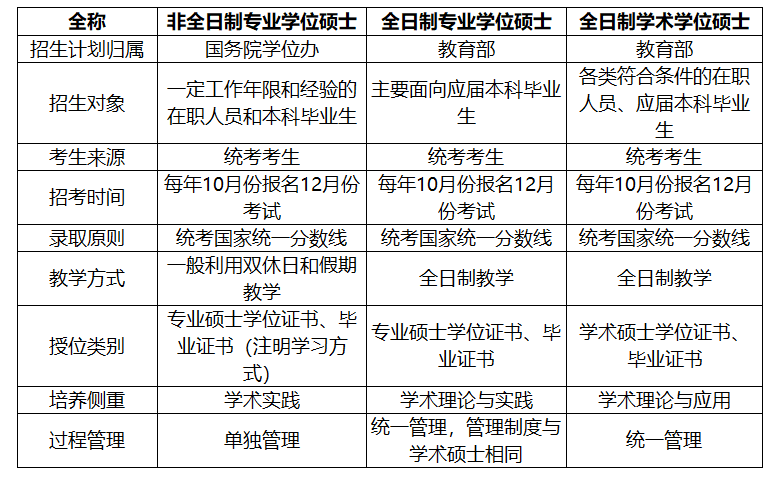 三、全日制和非全日制研究生的區別